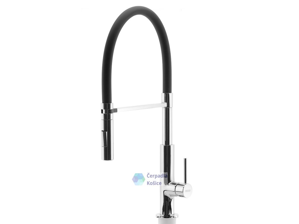 Drezová batéria so sprškou a čiernym flexi ramenom, chróm