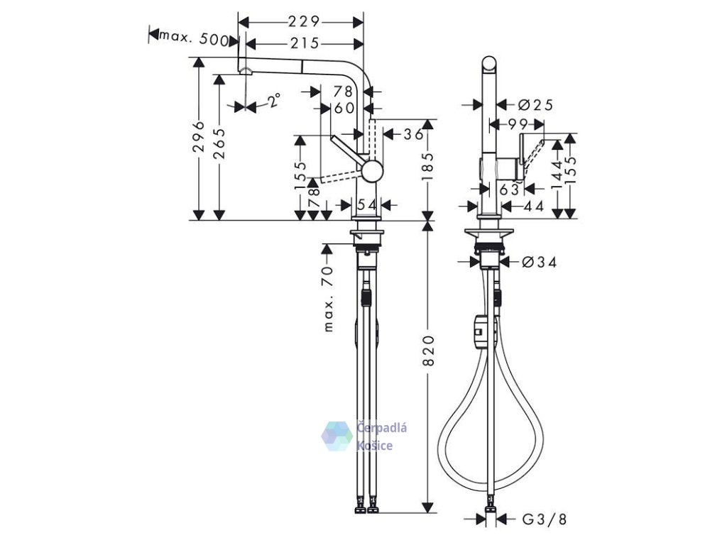 Spôsob pripojenia: | flexibilné hadice G 3/8", DN15 |