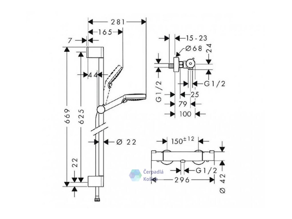 Sprchový set Hansgrohe s termostatickou batériou Crometta Vario Ecostat 1001 CL s celkovou výškou 699 mm, s prepínanim druhov prúdu otočením disku vodných lúčov, držiaky na stenu z plastu, otočná koncovka ktorá zabraňuje zamotaniu hadice,