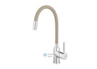 Kuchynská drezová batéria - odolná keramická kartuša 35mm,Výśka 335m, záruka 5 rokov, Elastické flexi ramienko , prevedenie béžové-chróm
