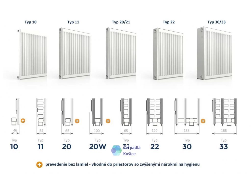Prevedenie: | Panelové, Do bytu, Kvalitné, Na kúrenie, Spodné pripojenie, Izbové, Doskové, Do chodby, Dvojitý |