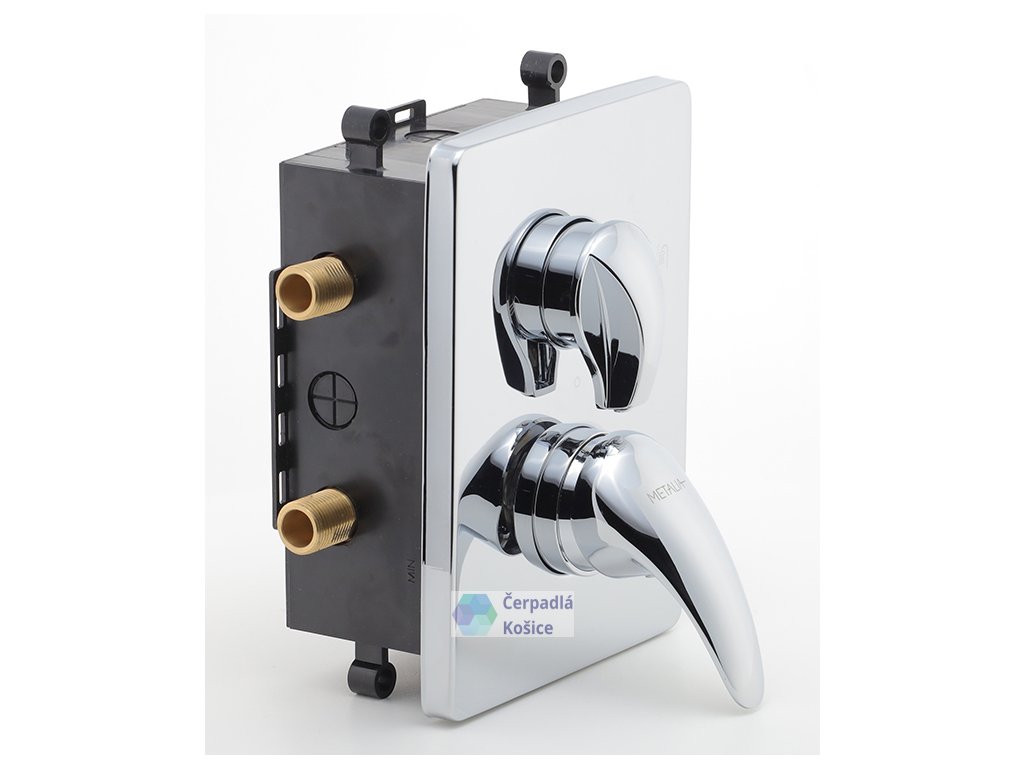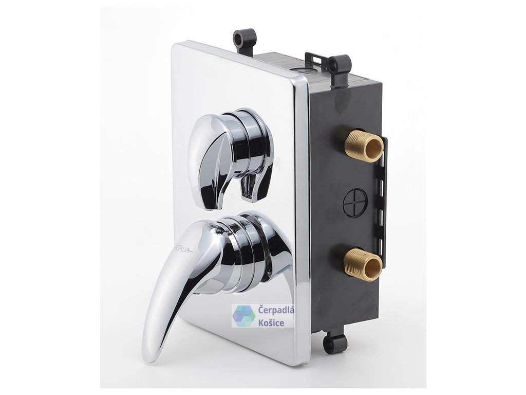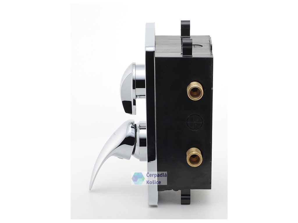 Kvalitná a odolná, keramická kartuš KEROX 40 mm so 7 ročnou zárukou. Prvotriedne chrómové prevedenie. Podomietková batéria s boxom pre 2 vývody vody a s keramickým prepínačom. Box je dodávaný spolu s krytom páky a prepínača.Dodatočné parametre