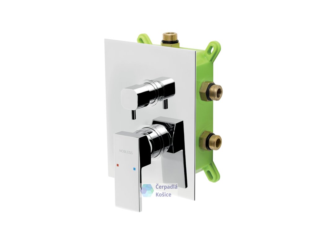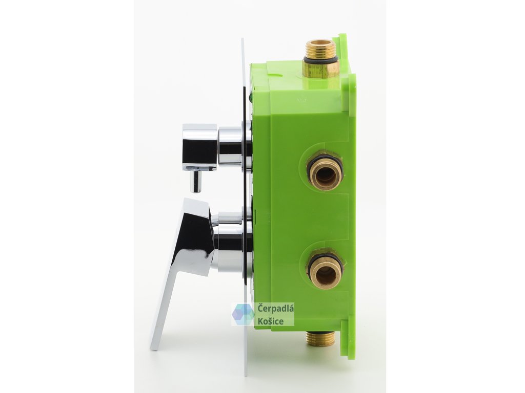 Kvalitná a odolná, keramická kartuš 35 mm s 5 ročnou zárukou. Prvotriedne chrómové prevedenie. Vaňová a sprchová podomietková batéria s boxom a keramickým prepínačom pre 3 vývody. Box je dodávaný spolu s krytom, pákou a prepínačom. Súčasťou je vodováha pre ľahkú a presnú montáž.Dodatočné parametre