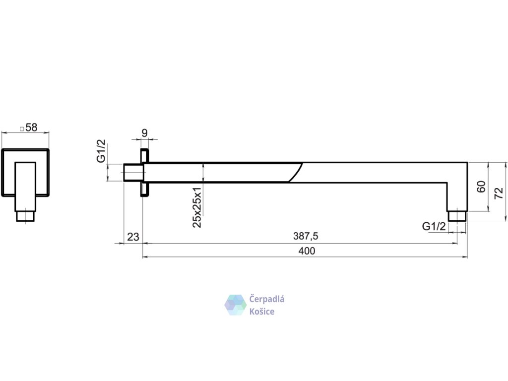 Rameno pevnej sprchy hranaté zo steny 400 mm chróm