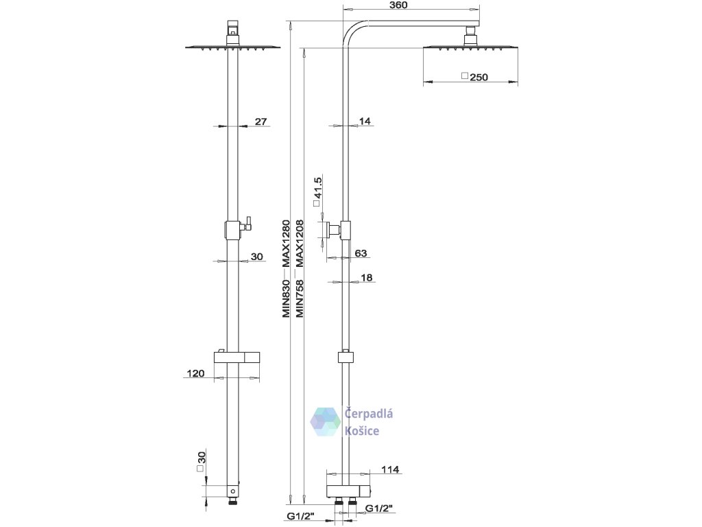 Prvotriedne chrómové prevedenie. Set je vhodný na pripojenie k vaňovej alebo sprchovej batérii so spodným vývodom. Súčasťou balenia je hlavová sprcha v SLIM DESIGN s priemerom 250 x 250 mm, kovová hadica 150 cm a 1-polohová ručná sprcha. Nastaviteľná výška setu je 830 - 1275 mm. Súčasťou balenia je pripojovacia hadička v dĺžke 70 cm.Dodatočné parametre