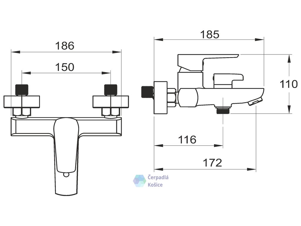 Vaňová nástenná batéria ECO, 150 mm, čierna